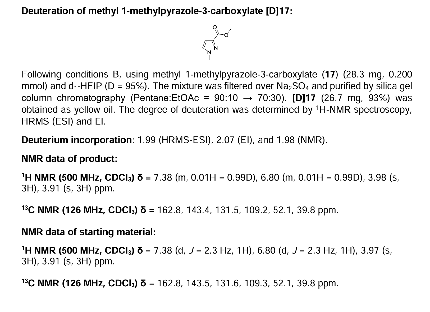 • Peak 21,3-异构体(烷基接在远离酯基的氮原子上,即 Methyl 1-alkyl-1H-pyrazole-3-carboxylate)。